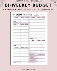 BI-WEEKLY Budget Overview Template Printable, Paycheck Budget Printable, Budget Binder, Budget Planner, Budget Template A A Letter PDF – Etsy