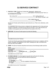 Free Disc Jockey (DJ) Contract Template PDF Word