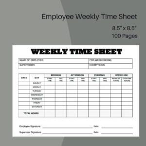 Employee Weekly Time Sheet: Employee weekly time sheet size “. x .” sheets (Weekly Time Sheet, Size .”x Employee Weekly Time Sheet: Employee weekly time sheet size “. x .” sheets (Weekly Time Sheet, Size .”x .” White Sheets)