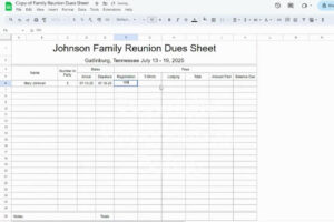 Google Sheets Family Reunion Dues Sheet Template Text Fillable / Text Editable Spreadsheet Tracker With Automated Totals Calculations