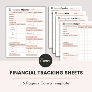 Budget Planner / Financial Tracking Sheets (Canva Template – OK to Resell) Budget Planner / Financial Tracking Sheets (Canva Template – OK to Resell)