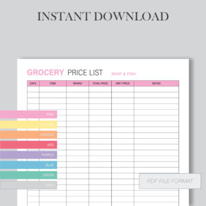 Printable Grocery Price List, Budget List, Grocery Budget, Grocery Printable Grocery Price List, Budget List, Grocery Budget, Grocery