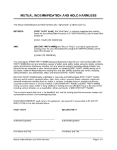 Mutual Indemnification and Hold Harmless Agreement Template Mutual Indemnification and Hold Harmless Agreement Template