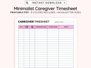 Printable Caregiver Timesheet, Home Health Care Time Sheet, Caregiver Schedule, Caregiver Hours, Home Care Shift, Home Aid Visit Time PDF