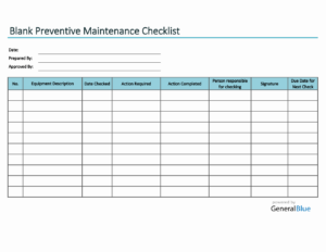 Blank Preventive Maintenance Checklist in Word