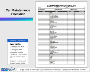 Car Maintenance Checklist By Mileage, Basic Car Maintenance Checklist Printable Pdf, Preventative Car Maintenance Checklist PDF, GOOGLE DOCS