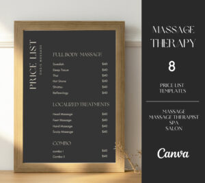 Massage Price List Template I Spa Price List Template I Printable Massage Price List Template I Spa Price List Template I Printable