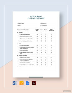 Restaurant Closing Checklist Template in Pages, Word, PDF, Google Restaurant Closing Checklist Template in Pages, Word, PDF, Google
