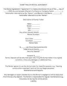 Dump Trailer Rental Agreement-Template Digital Download: Dump Trailer Rental Agreement-Template Digital Download: