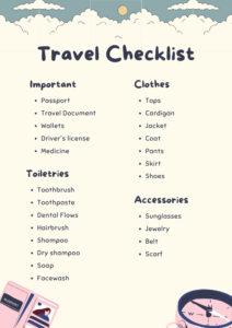 Printable White Blue Modern Travel Checklist, travel checklist, family packing list, vacation to do list, checklist pdf, travel packing list