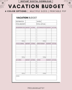 Vacation Budget Printable, Holiday Budget Planner Printable Vacation Budget Printable, Holiday Budget Planner Printable
