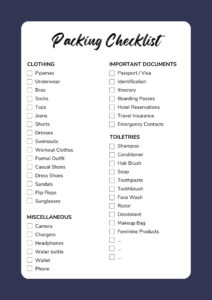 Printable Modern trip Packing list Checklist, travel checklist, family packing list, vacation to do list, checklist pdf, travel packing list